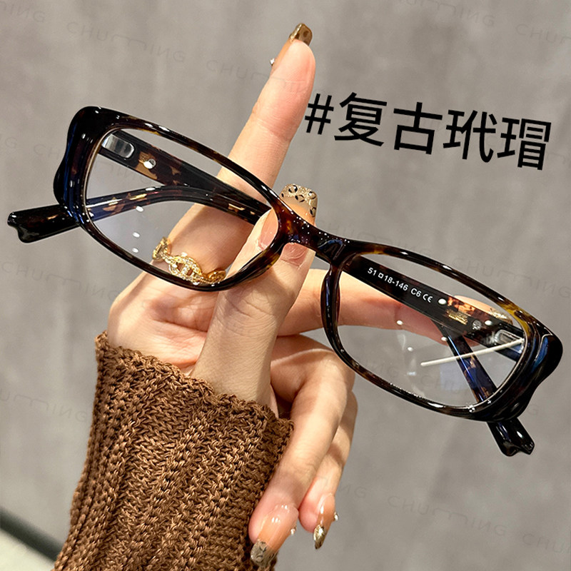 复古奶棕色方形窄框眼镜近视女可配有度数