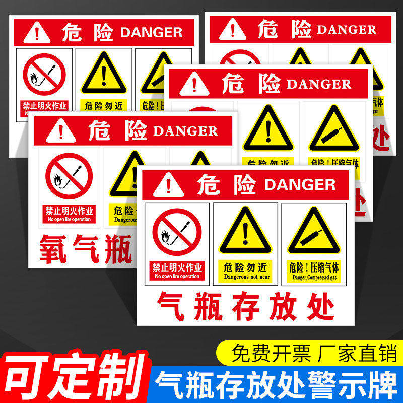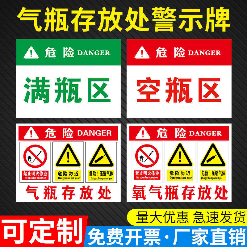 气瓶存放处标识牌安全提示牌空瓶区满瓶氧气氩气氮气二氧化碳乙炔仓库固定标志牌实验室化学品储气罐警示牌