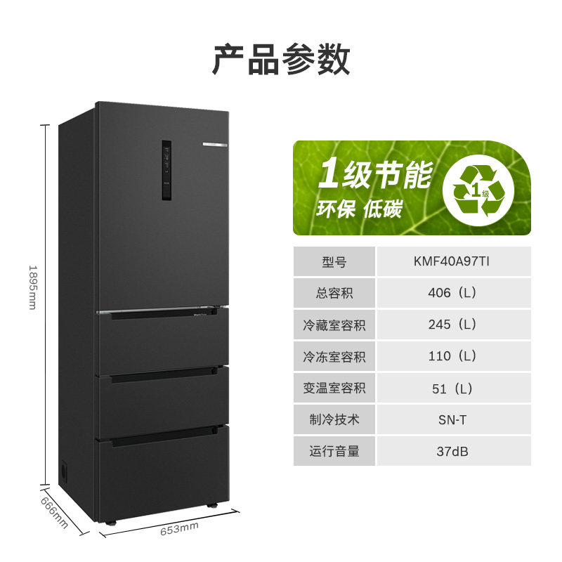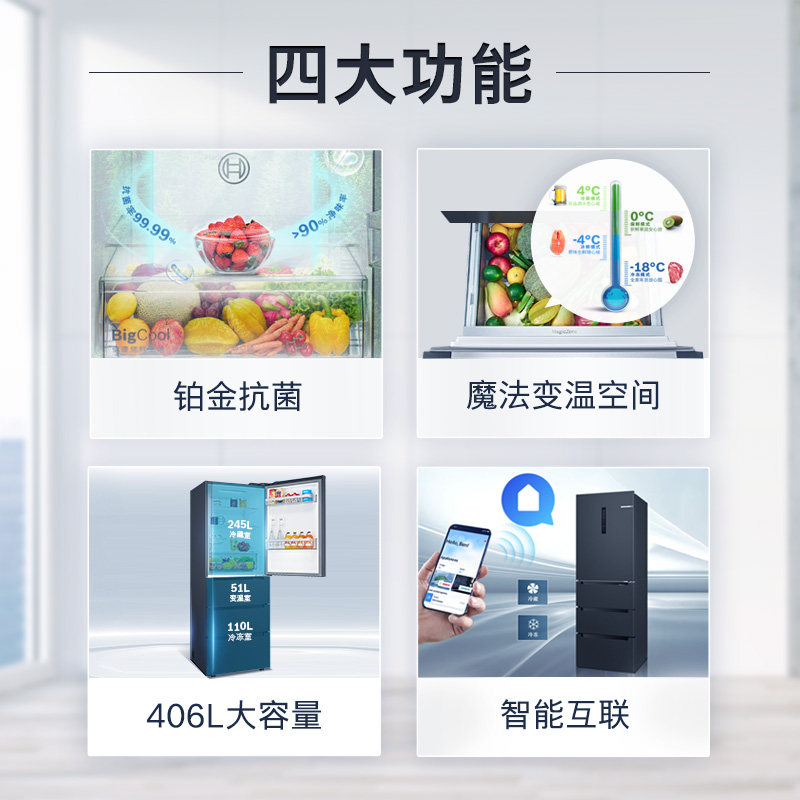【政府补贴】博世M6新品406L家用小型一级多门抗菌净味冰箱40A97
