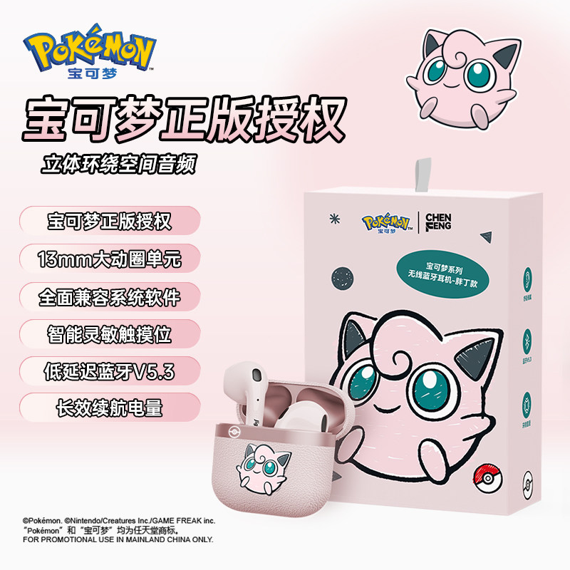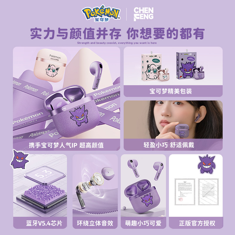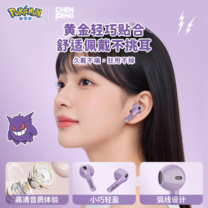 宝可梦D61蓝牙耳机耿鬼&胖丁情侣款无线降噪男女运动游戏半入耳式