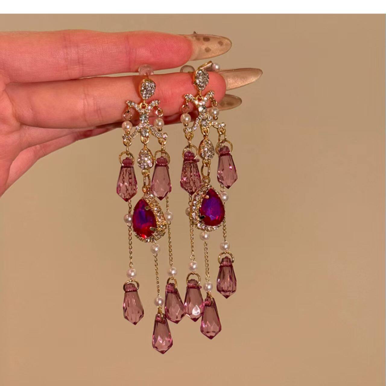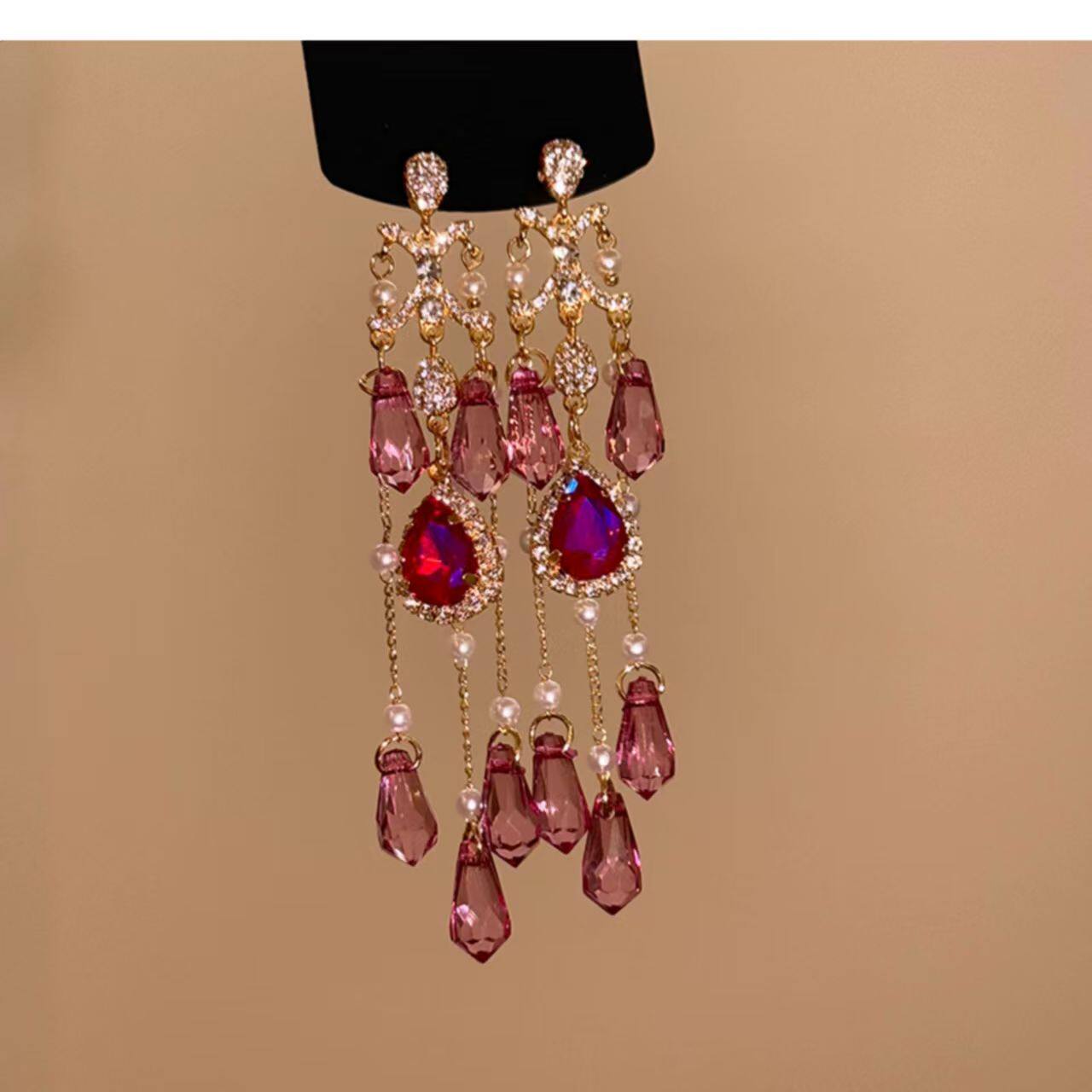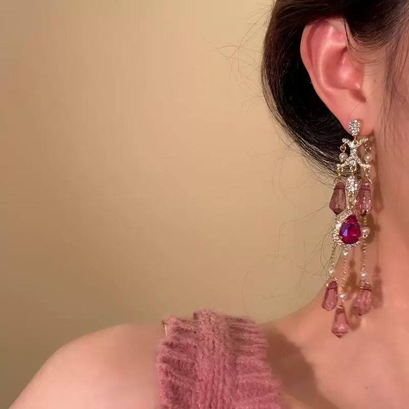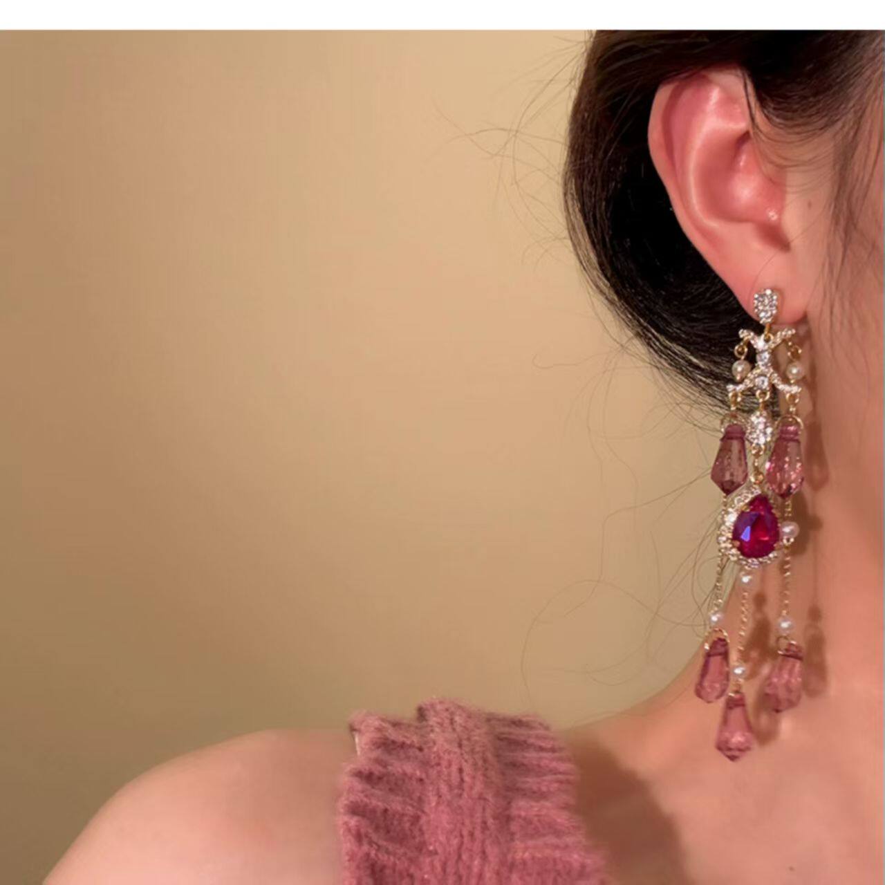 华丽女主~法式温柔高级感耳钉锆石耳环气质精致水滴流苏耳饰