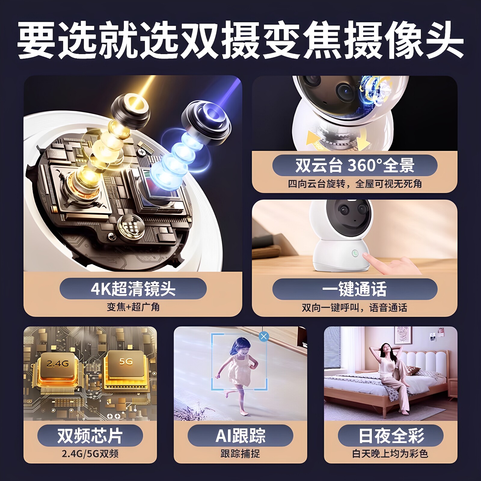 适用小米监控智能摄像头家用4K高清室内无线手机远程无死角宠物