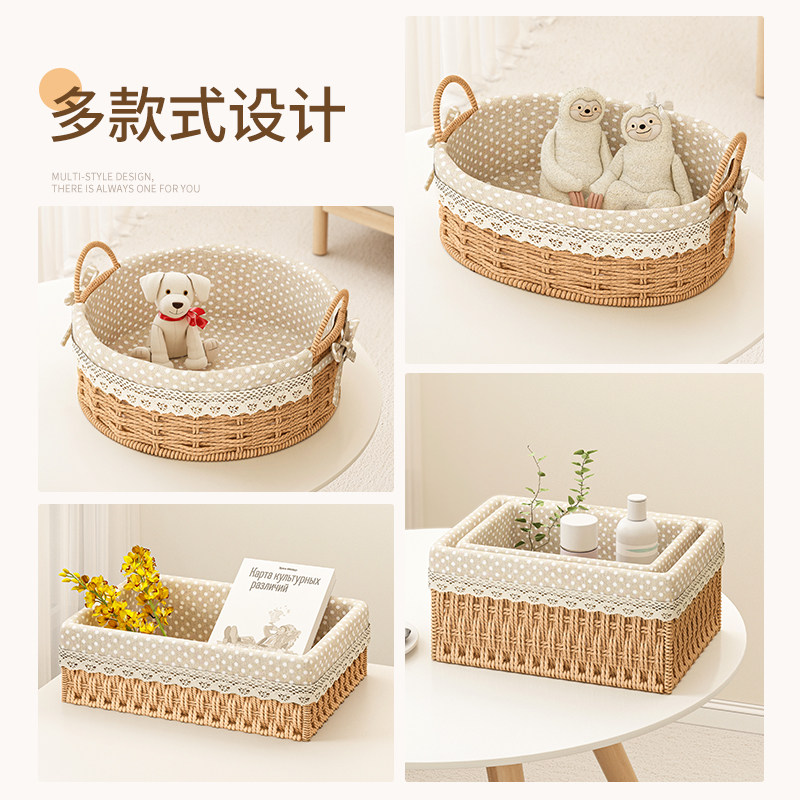 收纳筐钥匙收纳盒手工编织桌面茶几零食收纳篮家用玄关摆件杂物