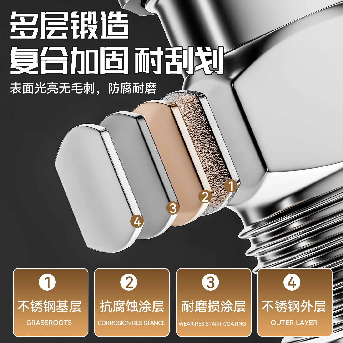 新款不锈钢角阀靠墙支装接头4分通用 活动接口水龙头延长管配件头