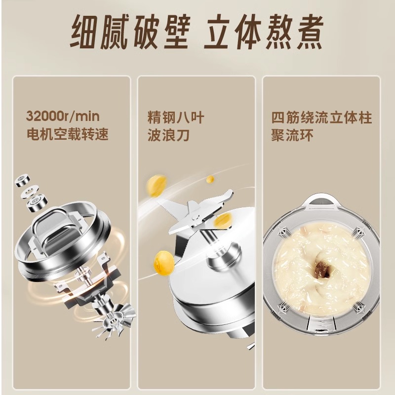 德国品质静音豆浆机家用小型多功能全自动加热免过滤破壁机果汁机