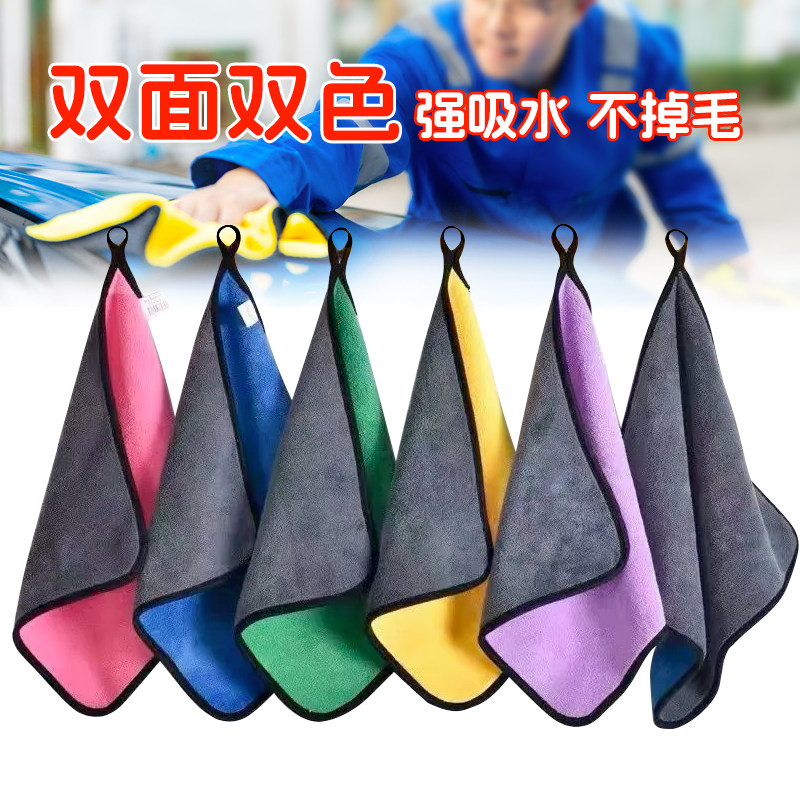 高密度双面超厚珊瑚绒擦车洗车毛巾抹布清洁巾多色神器专用不掉毛