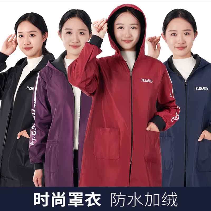 冬季加绒罩衣大人加厚长袖围裙防水韩版女时尚外套家用工作服定制