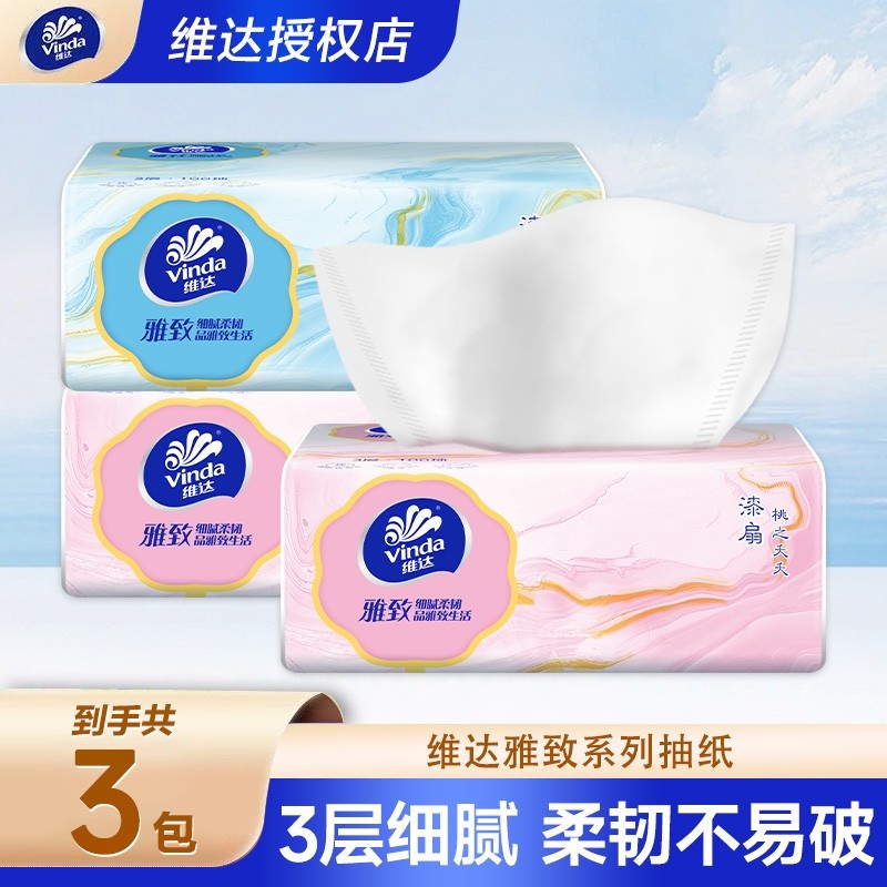 维达雅致抽纸家用实惠装卫生纸巾纸抽正品面巾卫生加厚抽取式印花