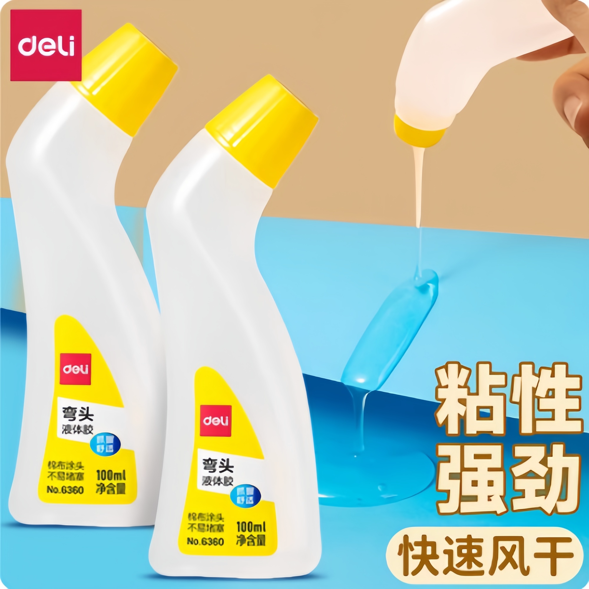 4瓶装得力7312胶水办公弯头液体透明胶学生财务用品海绵头快干胶