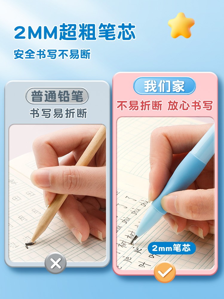 下单立减50-正姿优握自动铅笔2.0小学生不断铅芯加粗儿童练字矫正