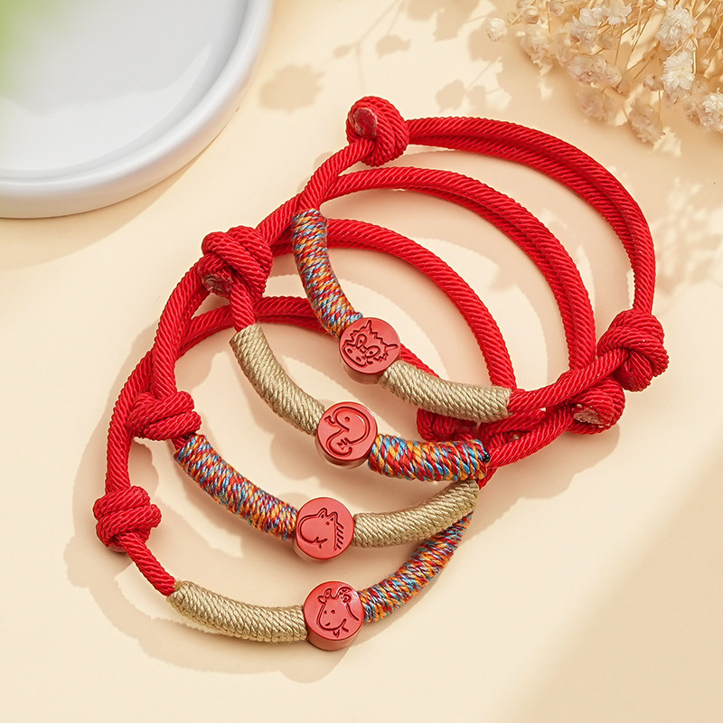 十二生肖本命年天然朱砂红绳手链情侣款手串生日马年新年礼物脚链