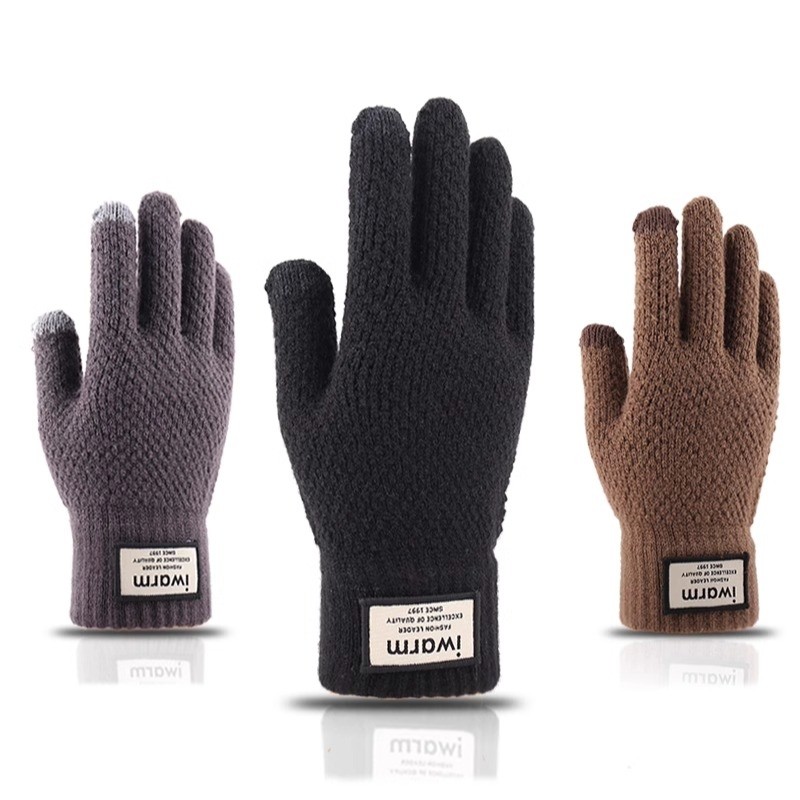 可触屏棉手套男士冬季保暖加绒加厚毛线针织骑行男女同款防寒手套
