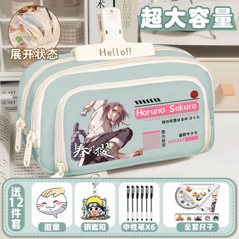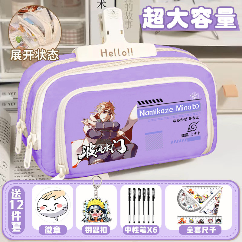 火影笔袋忍者学生爆款炫酷铅笔盒潮流文具热门便携鸣人多层笔盒