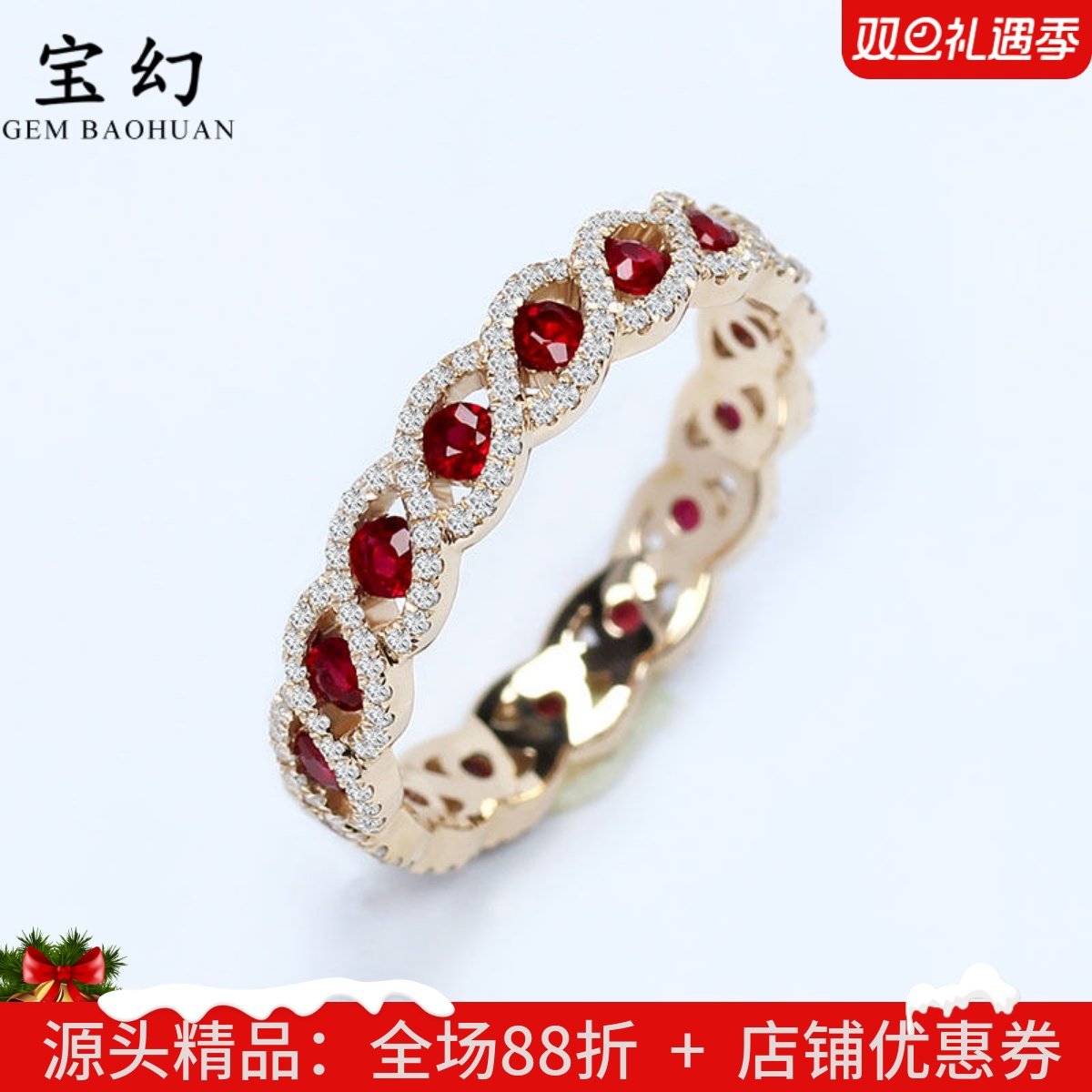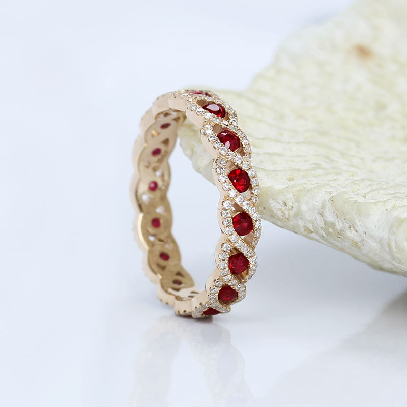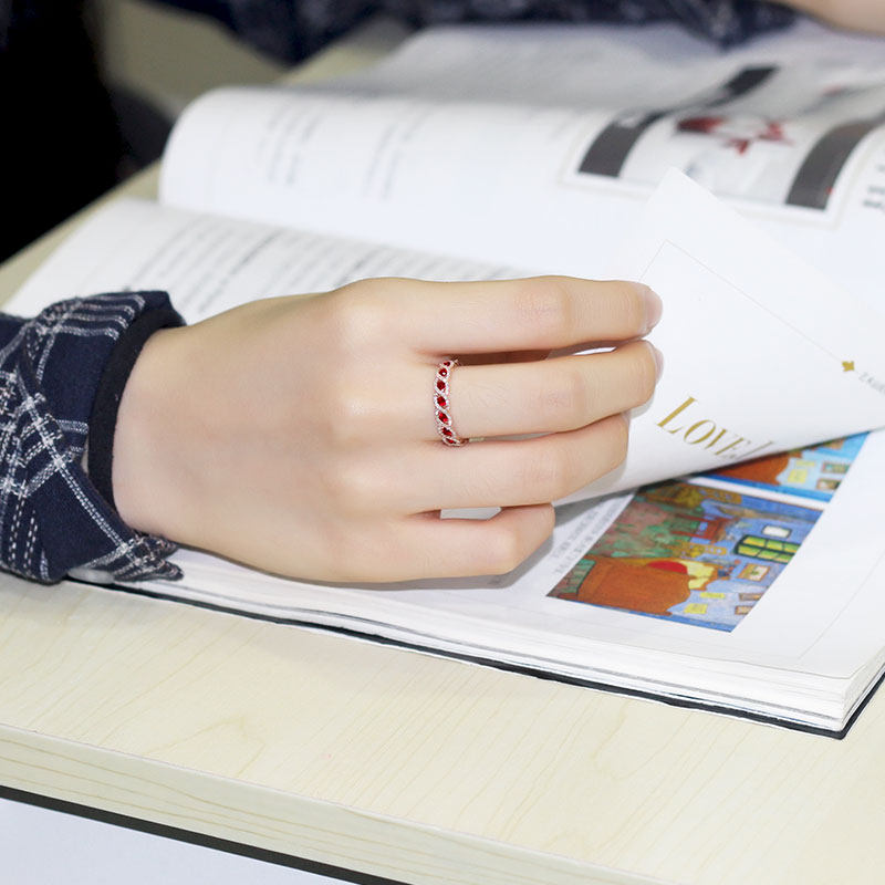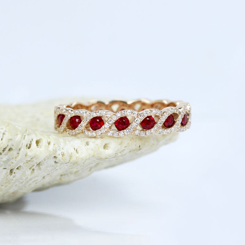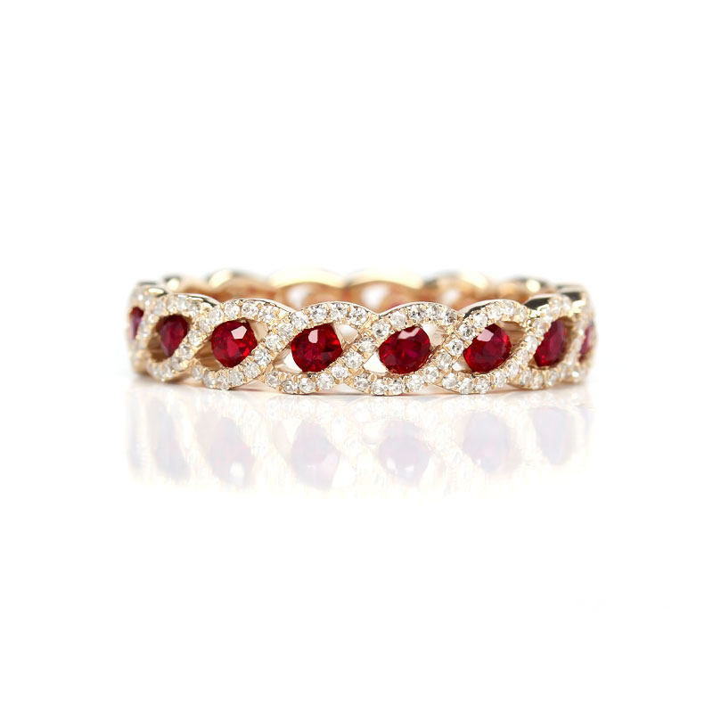 18K玫瑰金天然鸽血红宝石满天星排戒 彩金满圈钻石你的眼睛指环女