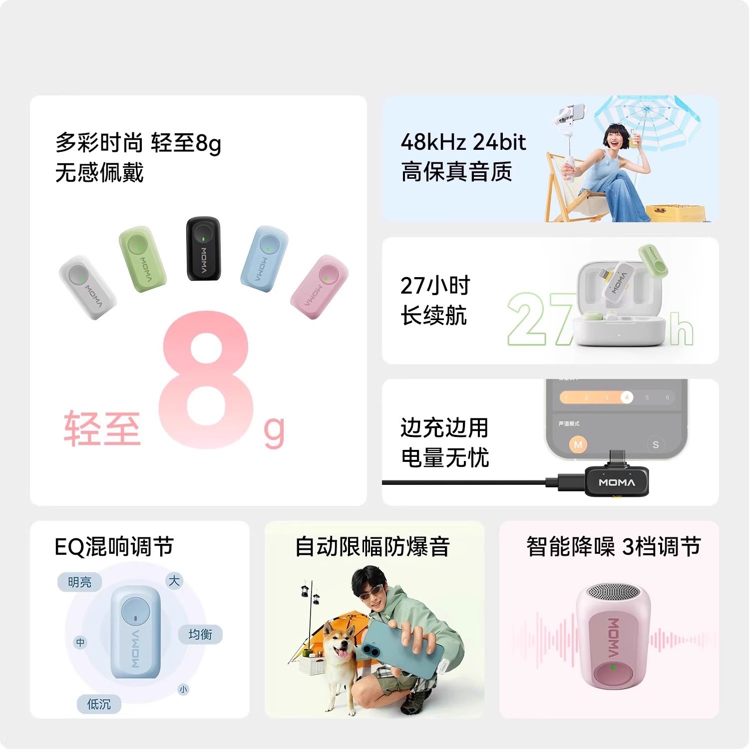 猛玛 LARK A1无线麦克风多巴胺迷你手机直播猛犸领夹麦智能降噪