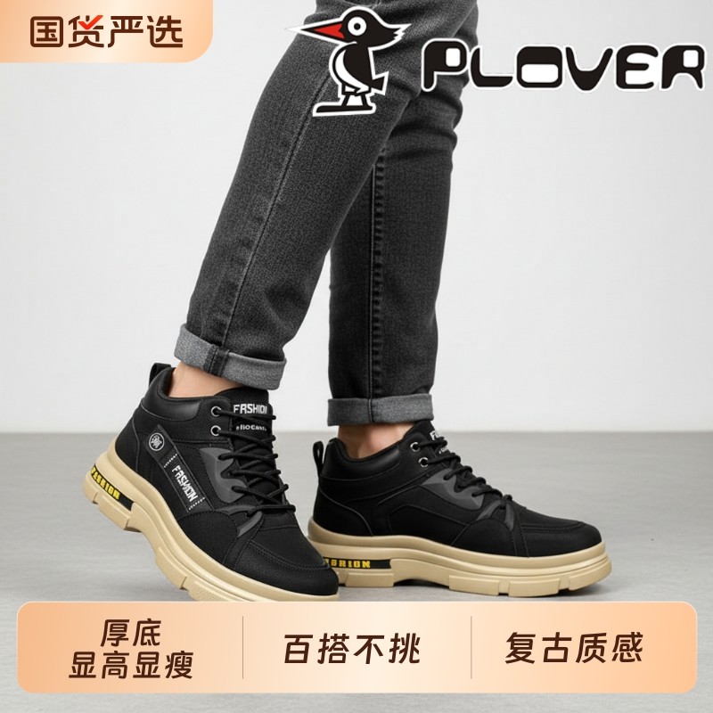 意尔康马丁靴男鞋2025新款爆款秋冬季加绒棉中帮增高休闲皮鞋男士