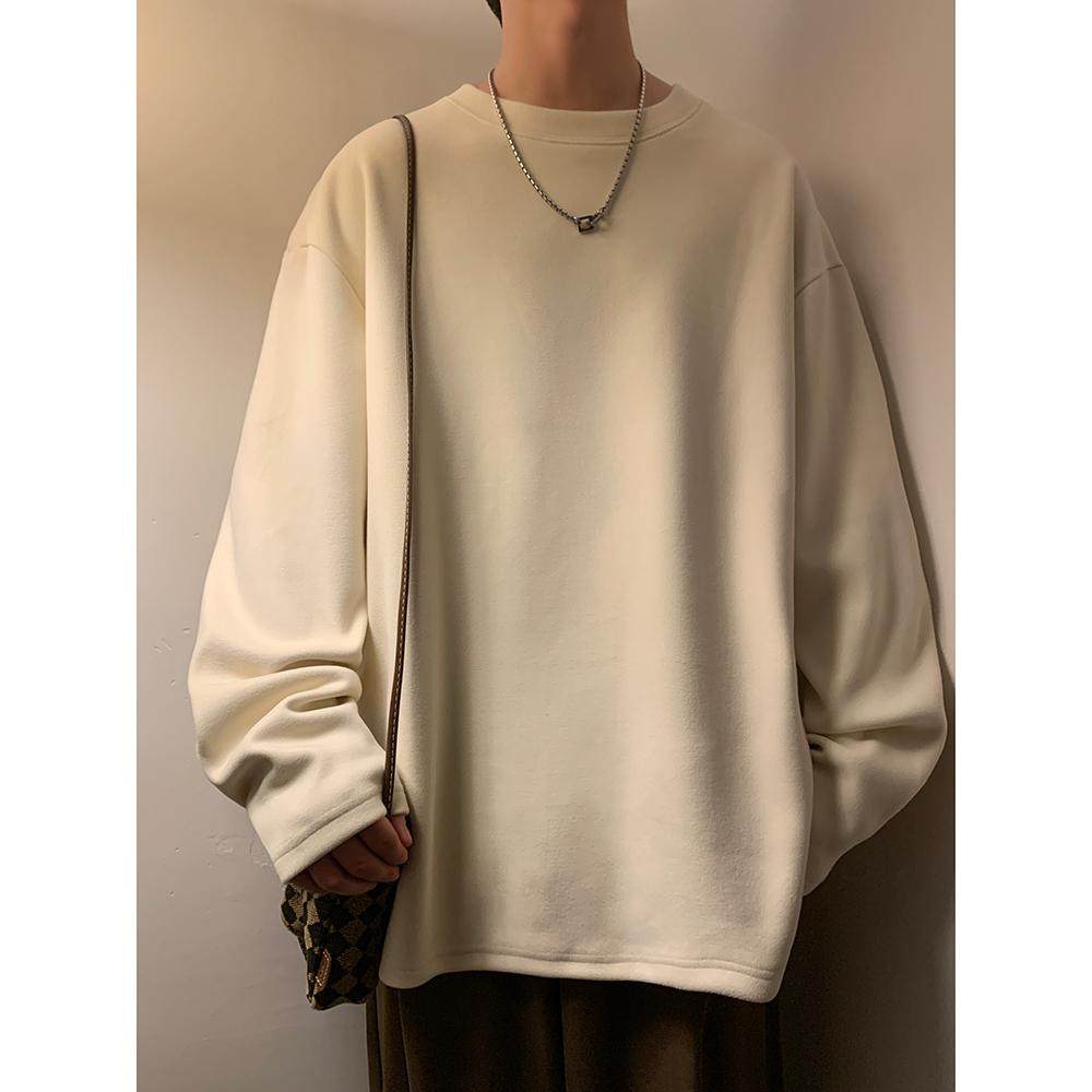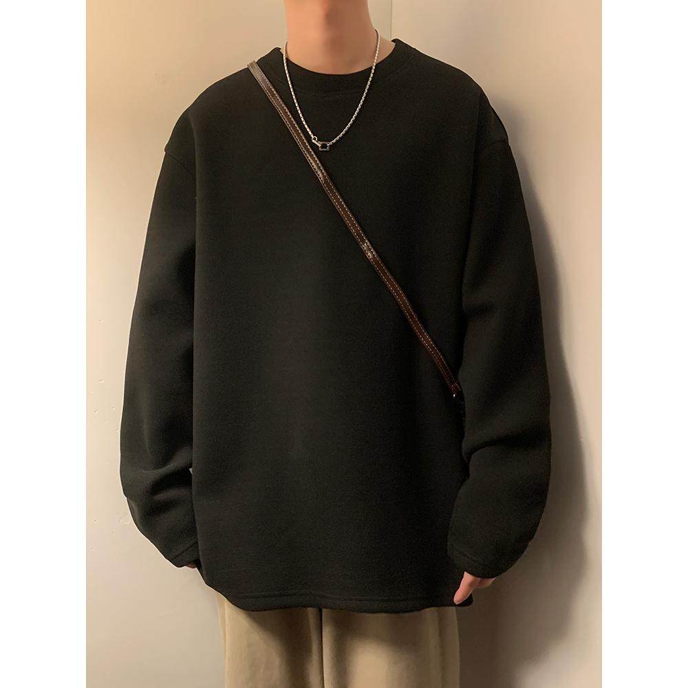 圆领德绒打底衫男士秋冬季2025新款上衣宽松韩版潮流内搭长袖t恤
