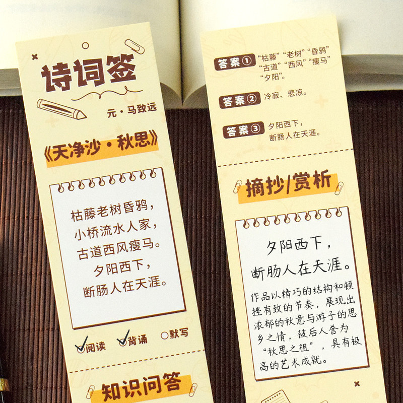 知砚新款古诗词抽签桶初中课内背诵复习小卡片趣味课堂亲子互动游戏诗文记忆卡小学生课文重点阅读摘抄赏析卡