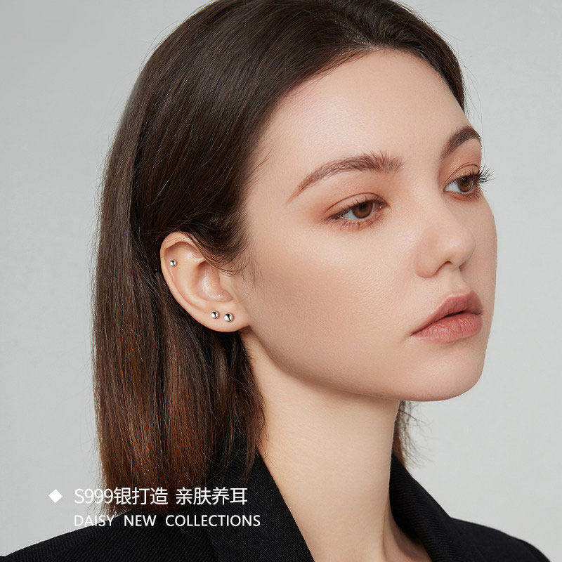 银耳钉女999纯银防过敏耳环男豆豆养耳棒耳骨钉睡觉免摘学生耳饰