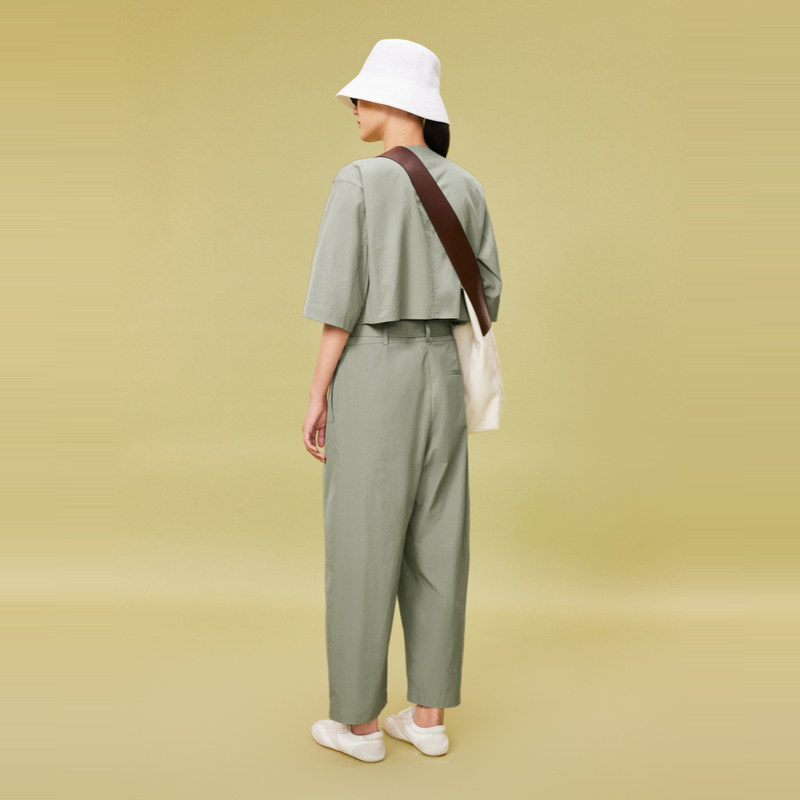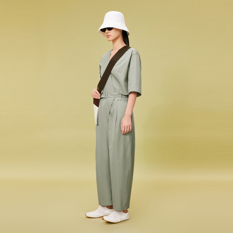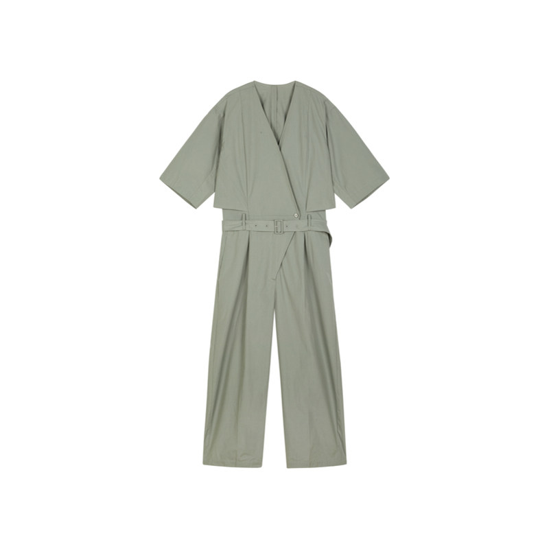 LESS长绒棉解构工装风短袖连体衣休闲通勤阔腿连体长裤2O5F11670