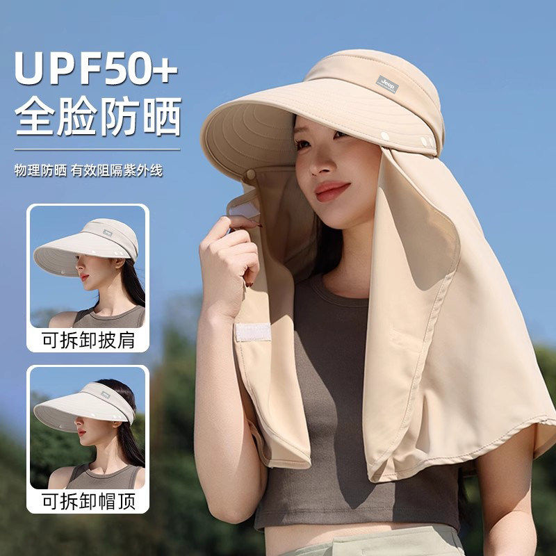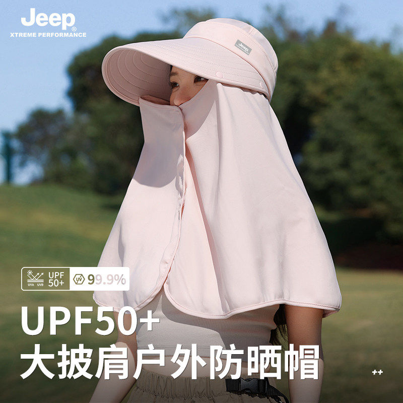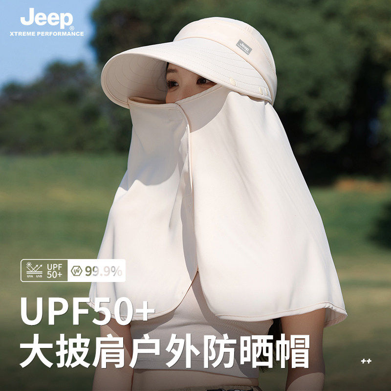 jeep吉普夏季女士渔夫帽防晒遮阳面罩防紫外线女帽子夏天大帽檐夏