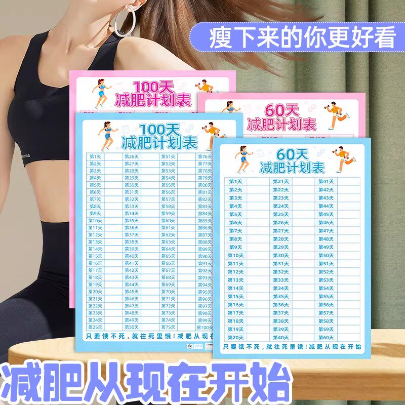 减肥计划表励志自律瘦身打卡记录墙贴拖延症监督饮食时间管理挂图
