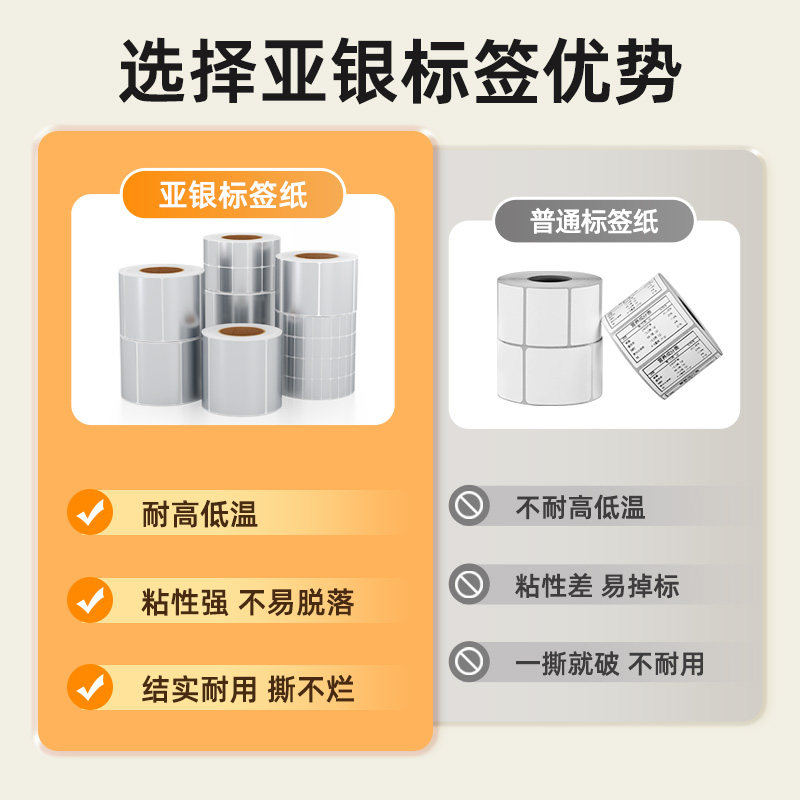 亚银不干胶标签条码贴纸防水PET标签食品珠宝碳带耐高温防水防油撕不烂三防定制办公储物柜优惠大箱装