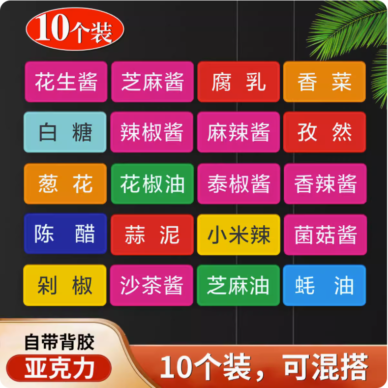 亚克力火锅自助调配料贴牌品菜蘸料标签酒店餐厅牌自粘调料贴牌