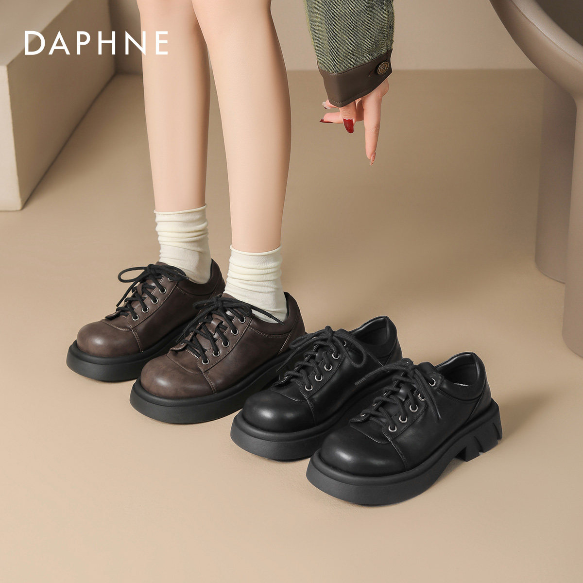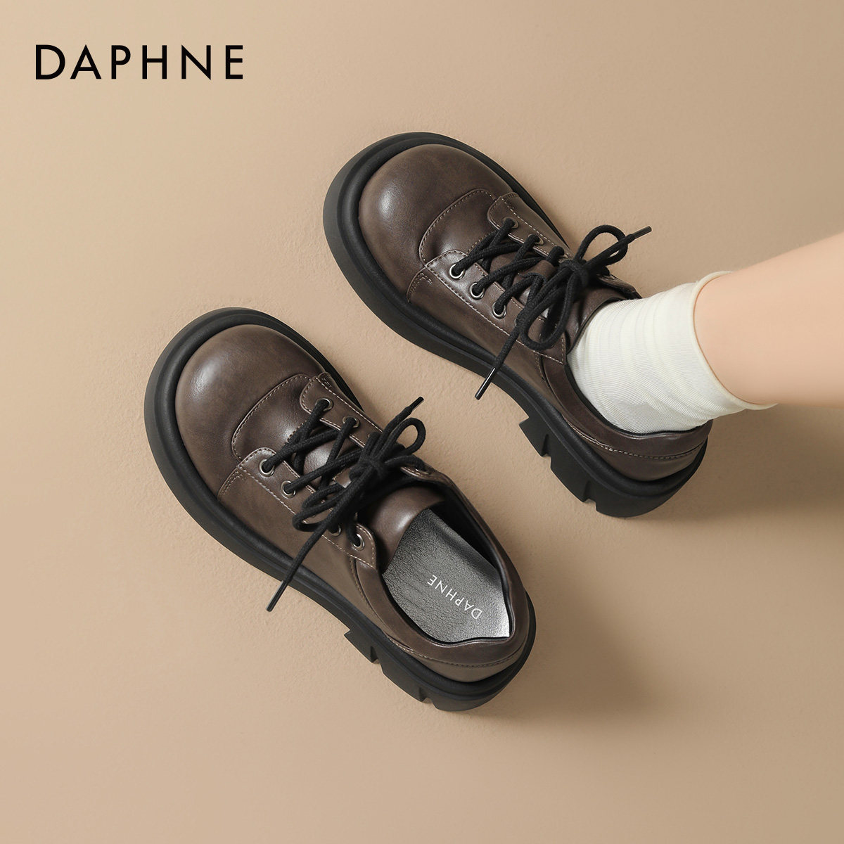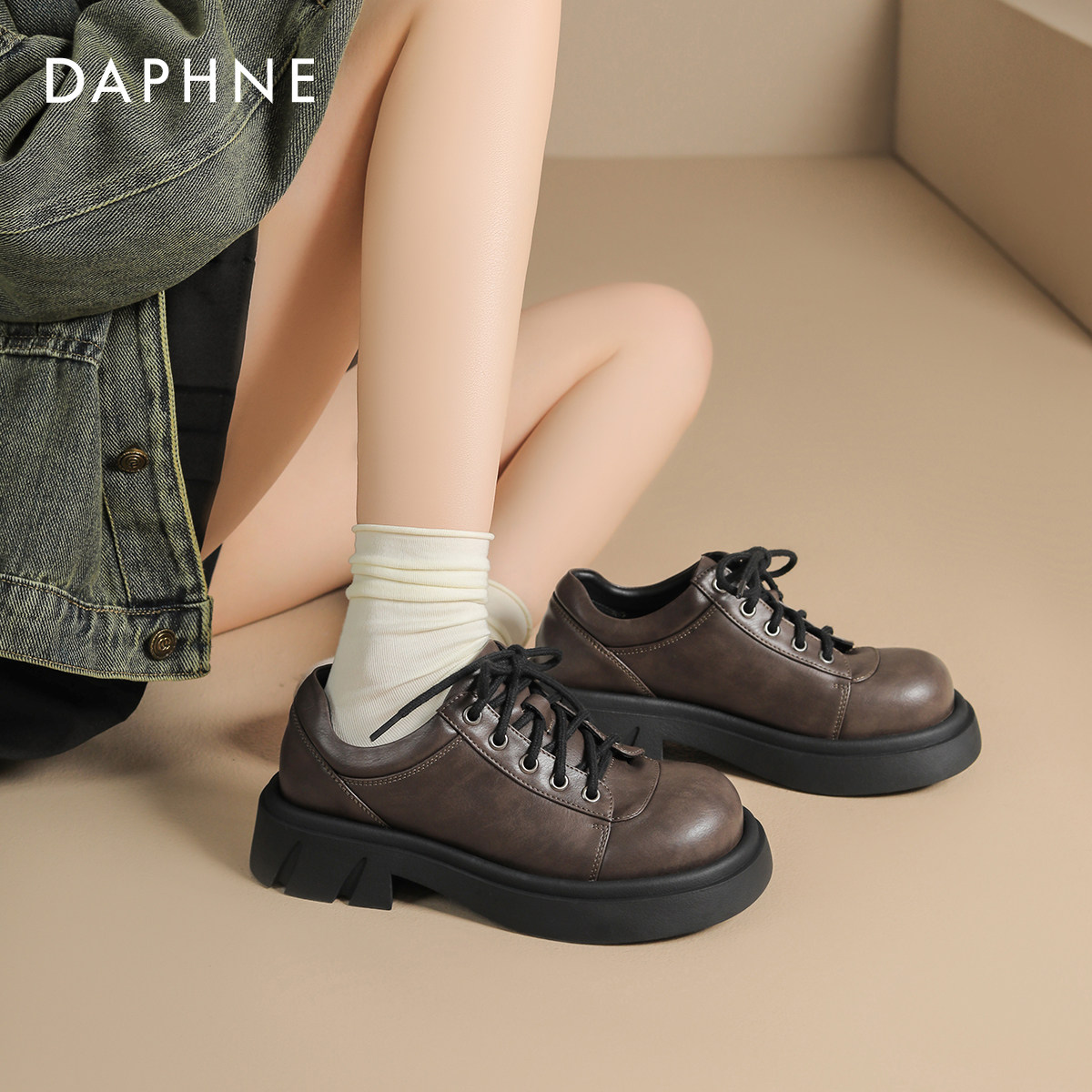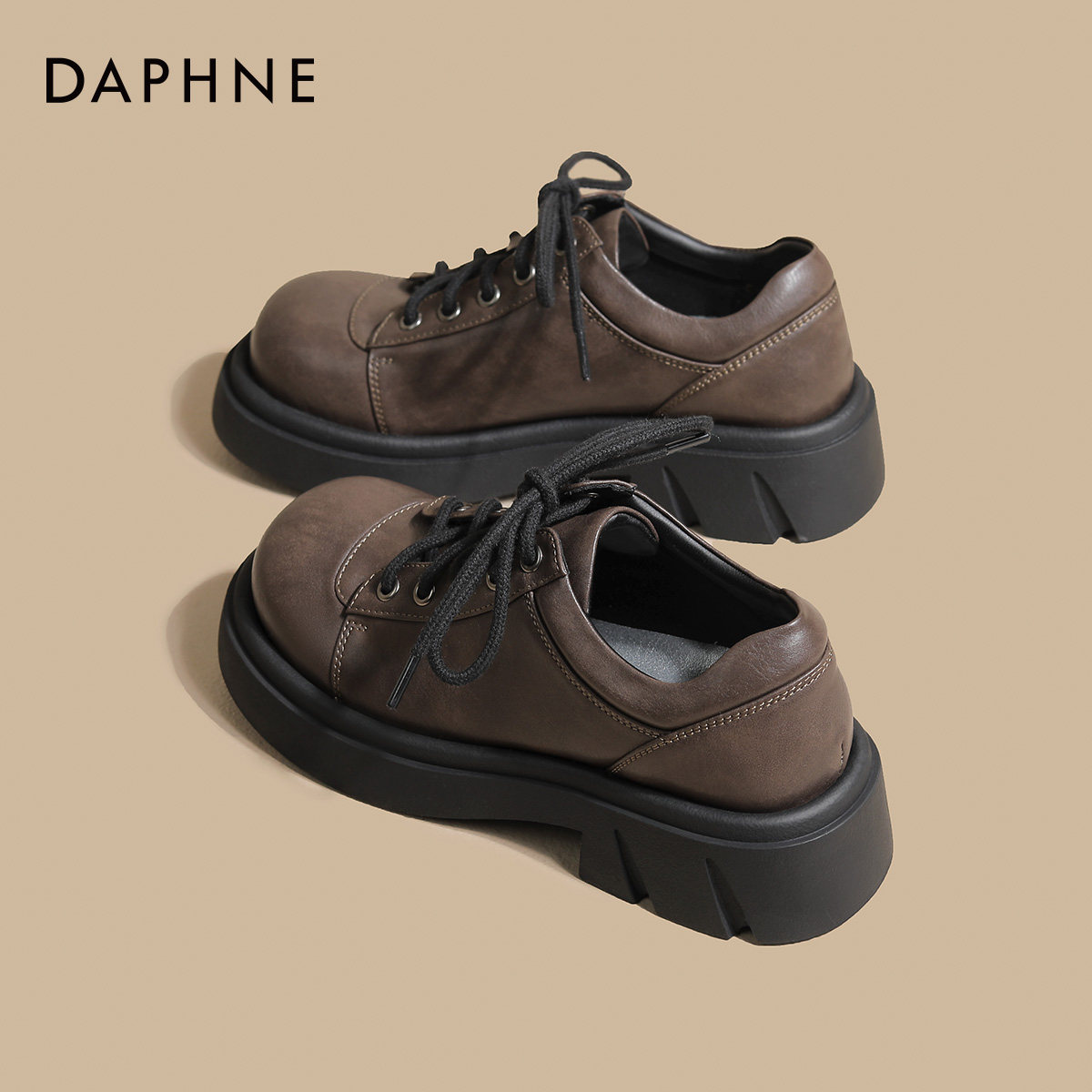 达芙妮棕色厚底乐福鞋女款2026新款春季厚底大头德比鞋百搭小皮鞋