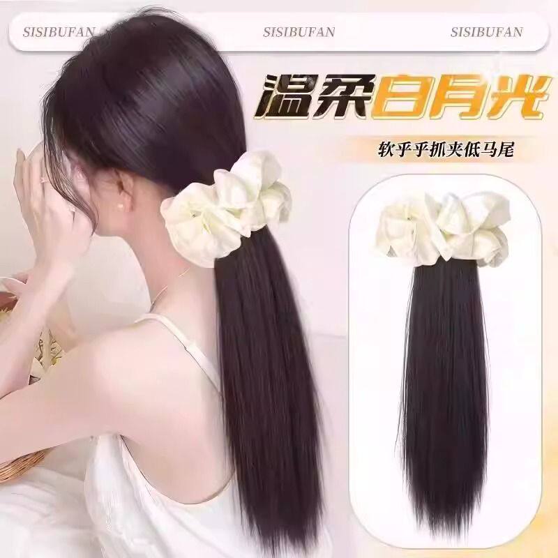 大肠发圈低马尾假发辫子抓夹式精致发饰仿真发气质长直假发辫马尾