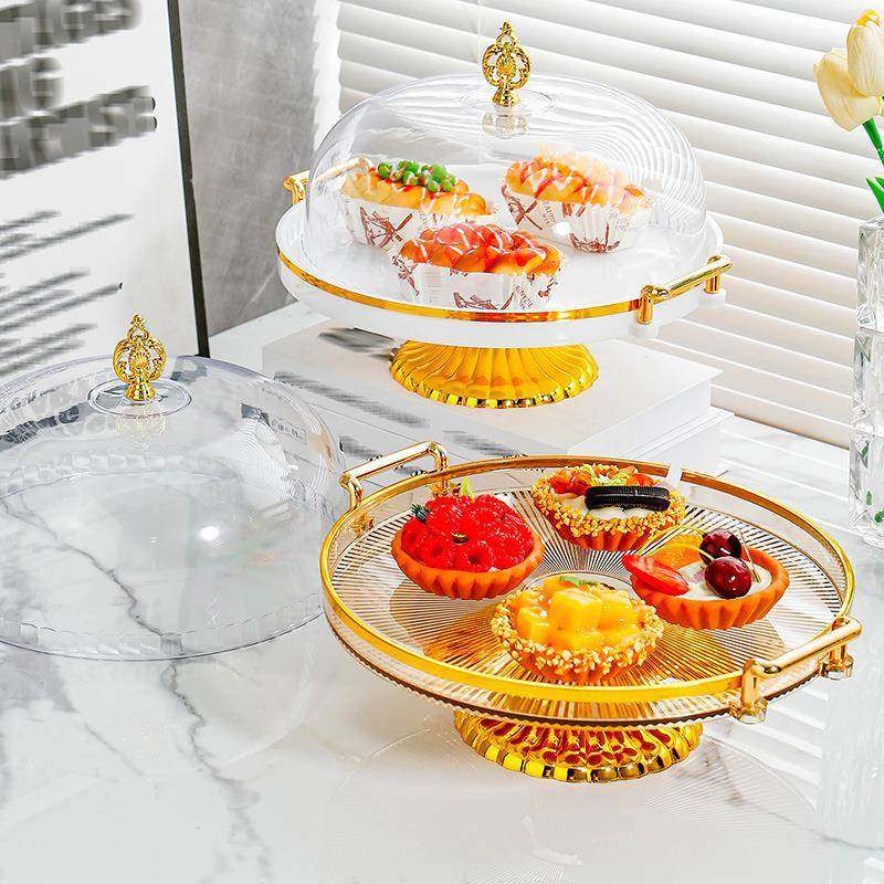 高脚蛋糕托盘带盖甜品台展示架子果盘透明塑料自助餐面包点心摆盘