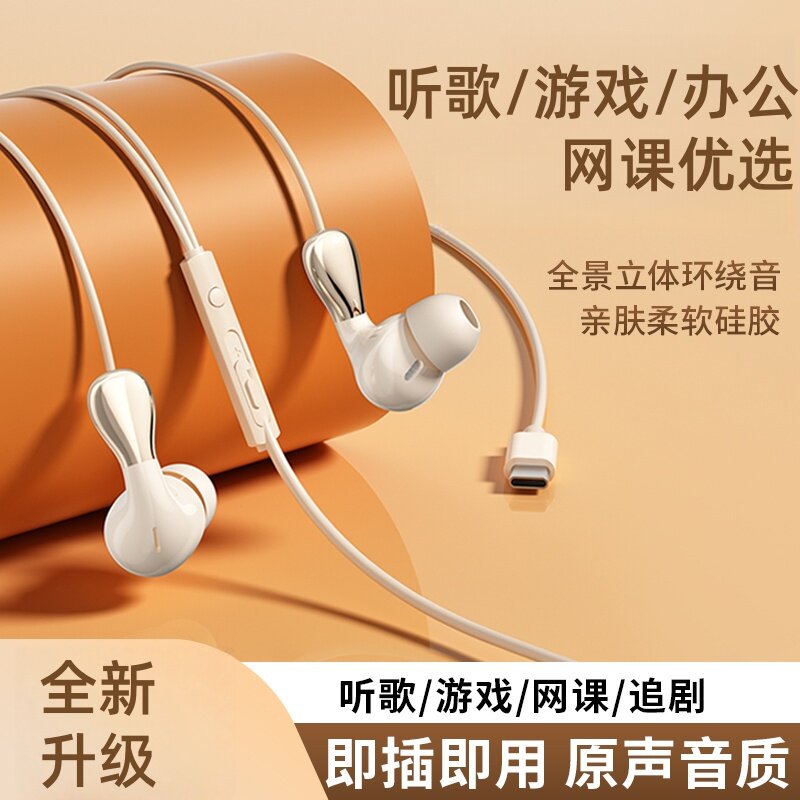 2025新款有线耳机半入耳式高音质type-c接口游戏听歌降噪手机圆口