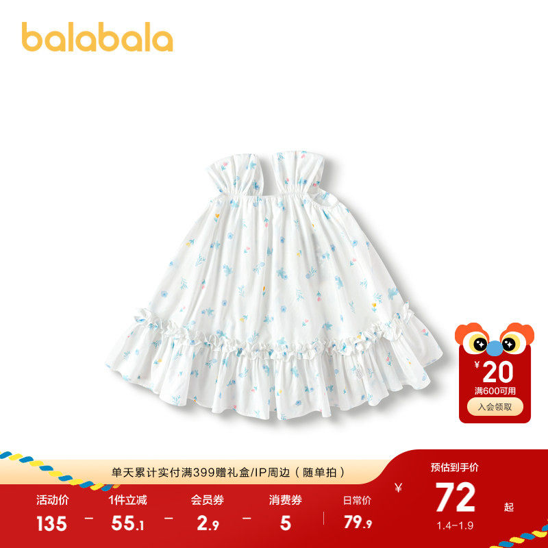 巴拉巴拉童装儿童连衣裙女童吊带裙甜美度假裙子夏碎花裙洋气可爱
