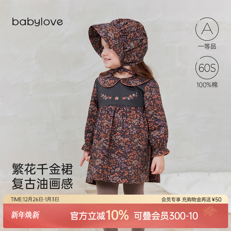 babylove女宝宝连衣裙春秋纯棉裙子婴幼儿法式洋气碎花裙暖雾花踪