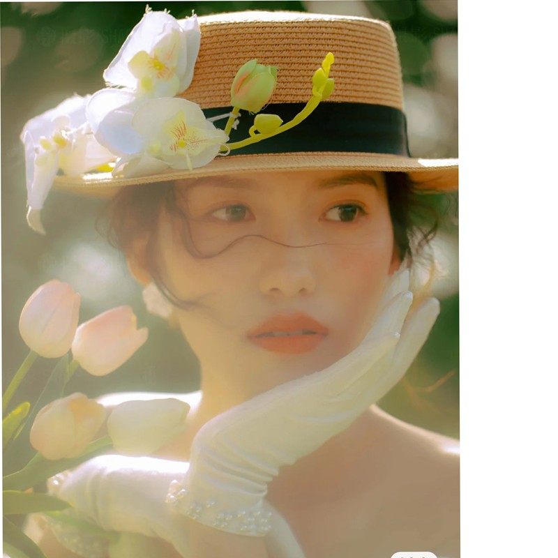 2023新款粘花礼帽 装饰太阳帽外景森系拍照道具女士平沿防晒草帽