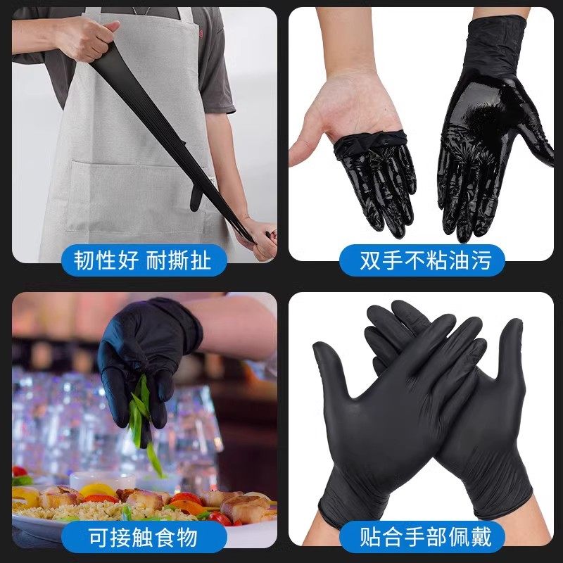 英科一次性手套黑色丁腈乳胶食品级加厚橡胶餐饮厨房防护防水耐磨