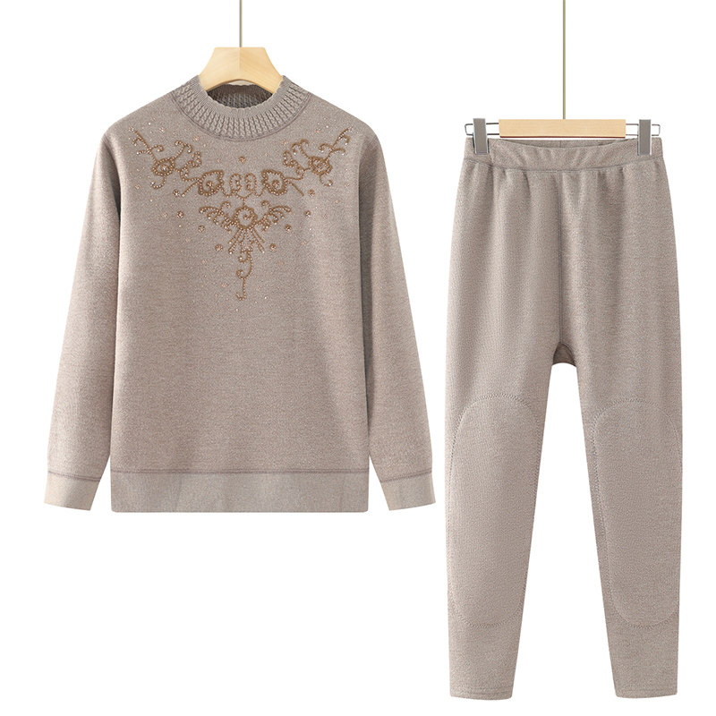 妈妈秋冬保暖内衣加绒加厚中老年人冬装套装女秋衣秋裤奶奶内搭