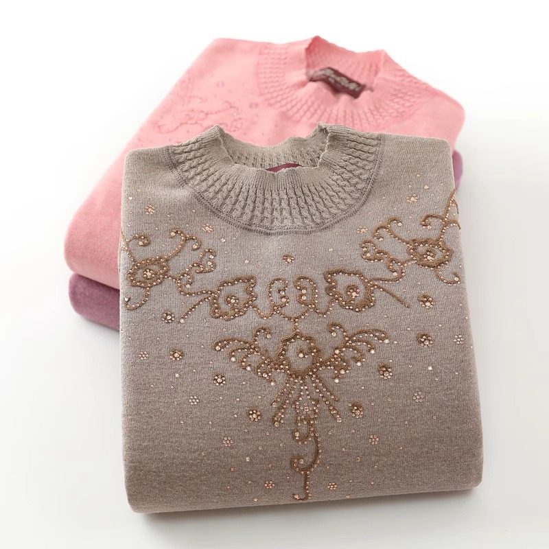 【蜜蜂欢乐社】妍影妈妈冬装加绒毛衣烫钻针织衫
