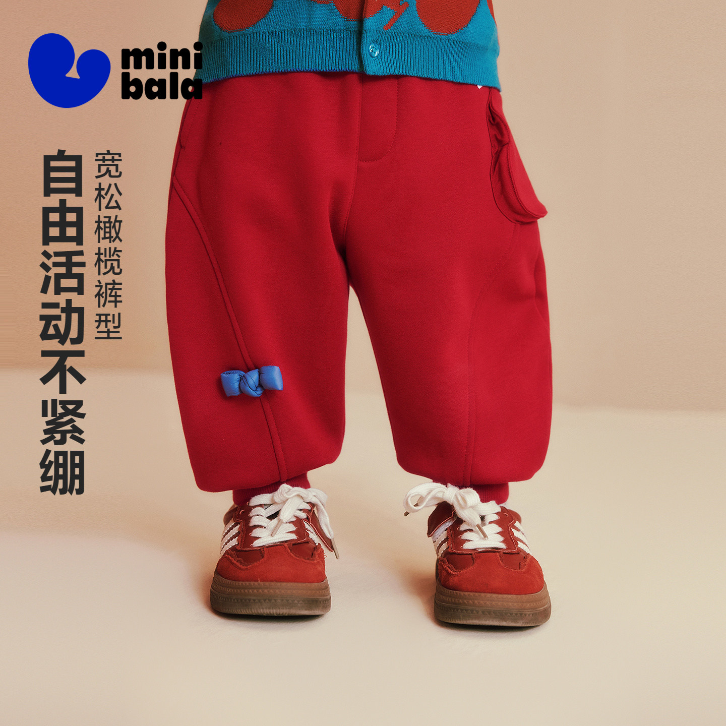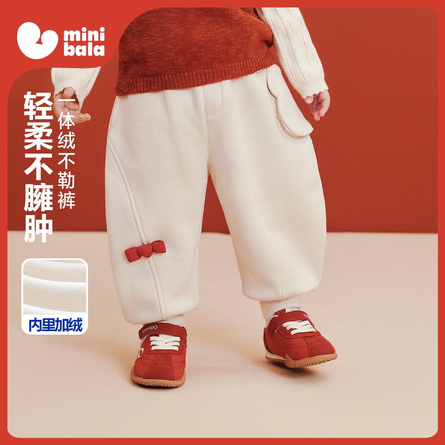 【远红外发热】迷你巴拉男女童宝宝长裤冬季抑菌加绒新年红色裤子
