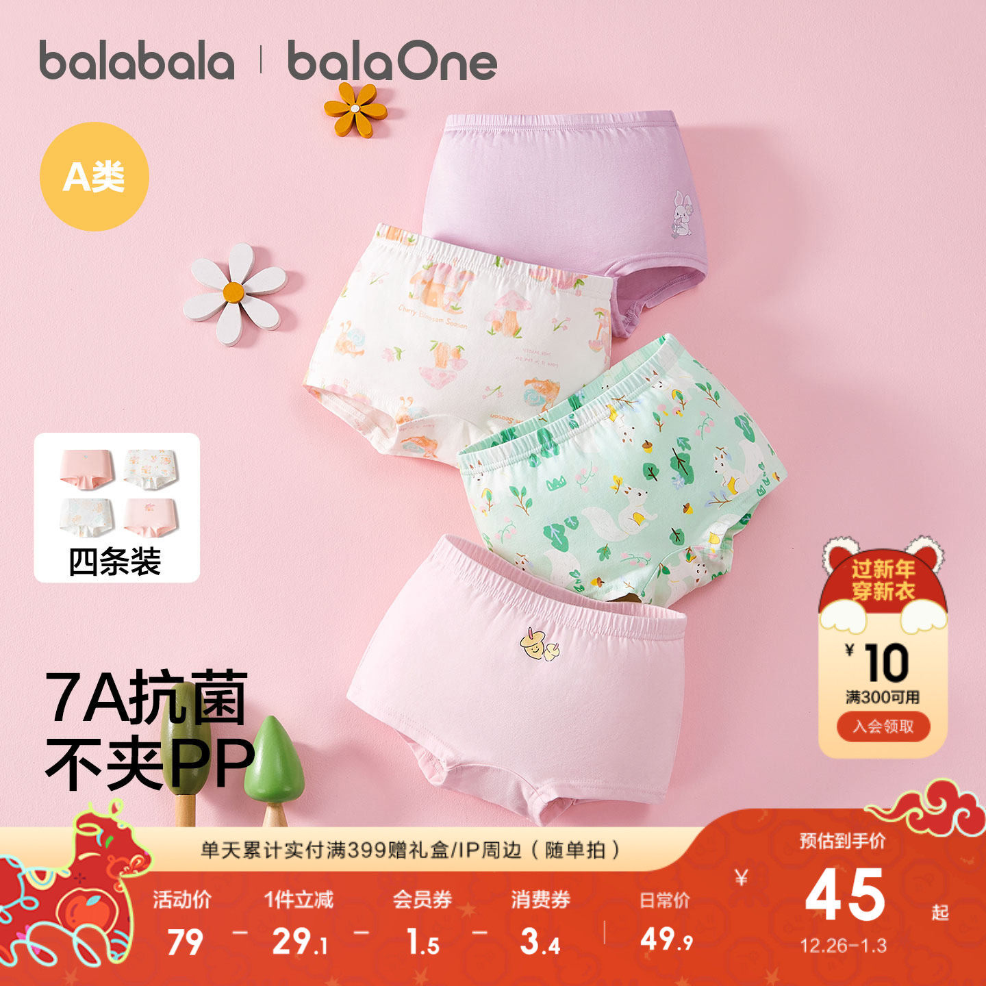巴拉巴拉儿童内裤棉平角四角短裤女童防走光宝宝抗菌裆柔软四条装