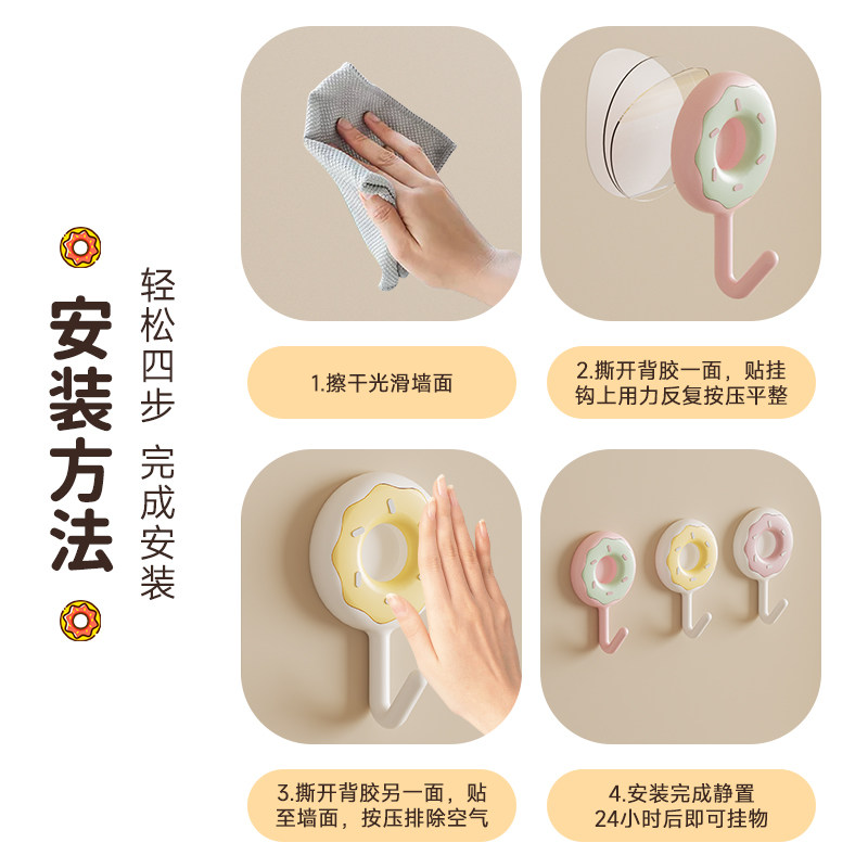 挂钩强力粘胶免打孔承重可爱无痕粘钩子挂衣钩墙面厨房粘贴浴室