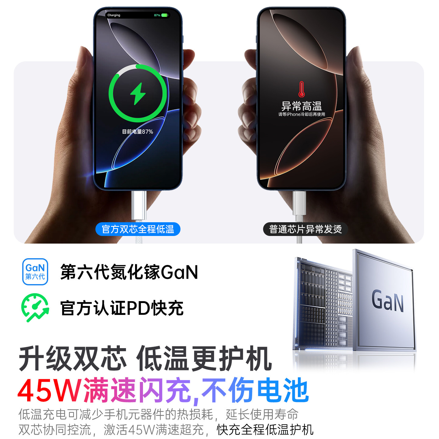 适用于苹果17Pro充电器线45W快充iPhone16promax手机15pro插头13快充35w数据线14原装正品pd充电头ipda套装