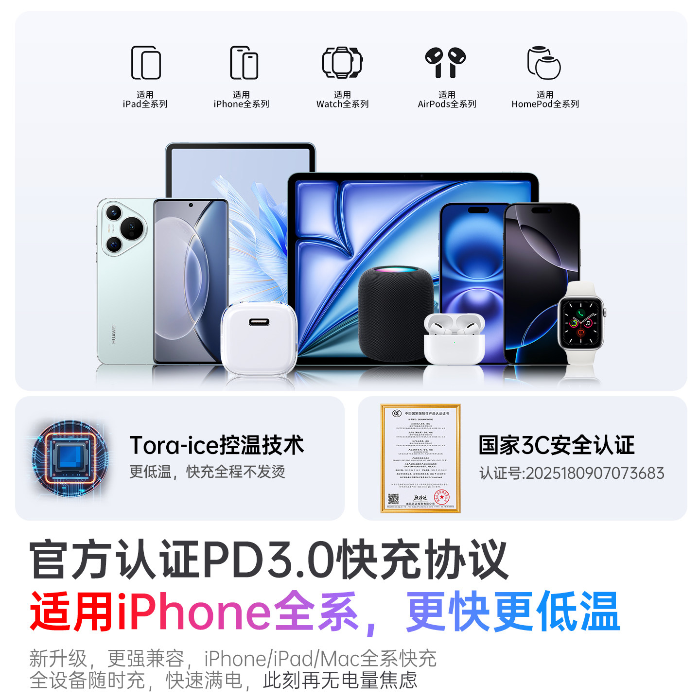 【国家3C认证】适用于苹果充电头快充iPhone15/16promax手机30W充电器头14/13/12plus平板PD45W闪充原20W套装
