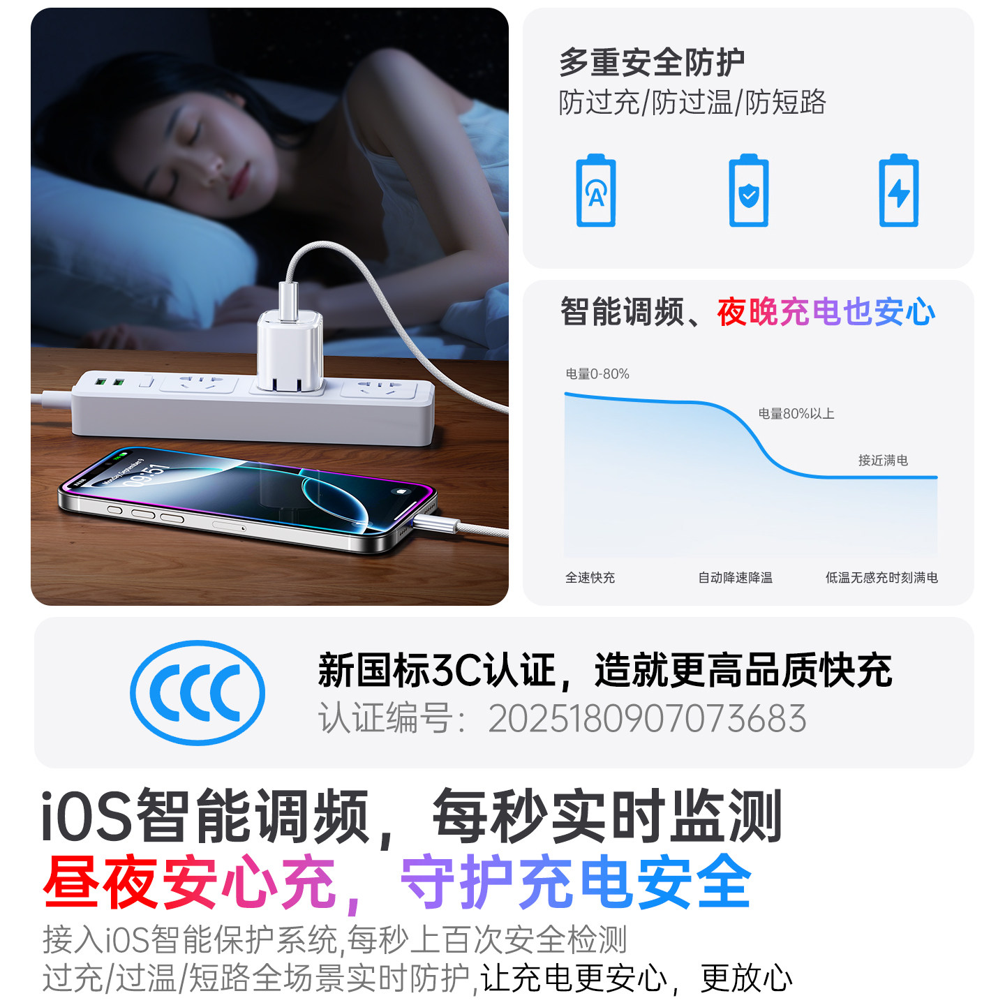 【国家3C认证】机乐堂适用苹果17/16pro充电器线iPhone15promax手机充电头30w快充PD插头数据线套装ipad平板