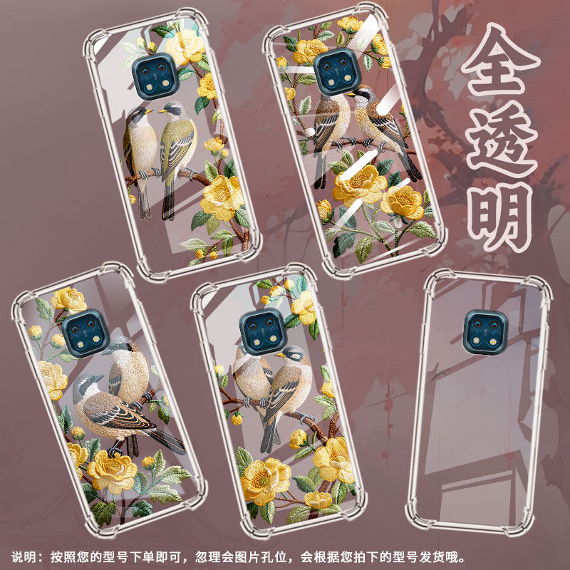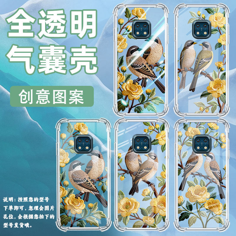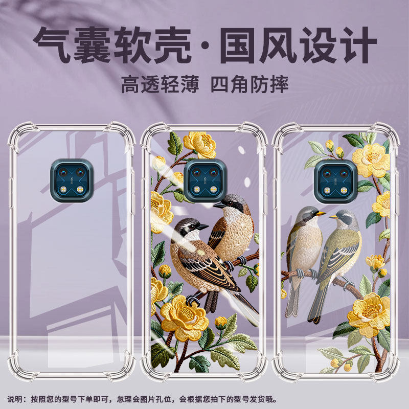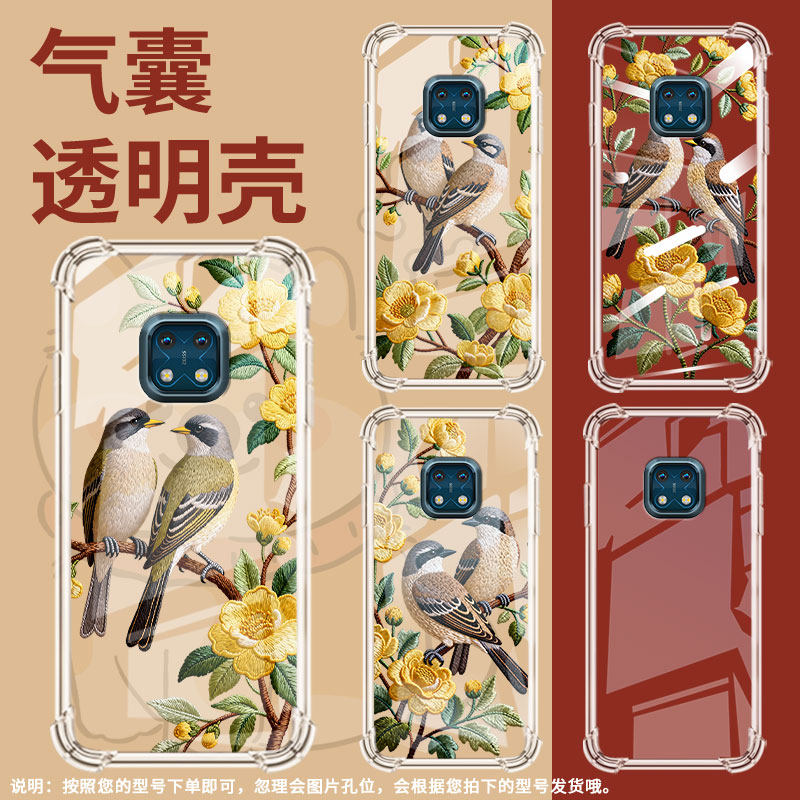 适用诺基亚X7气囊壳NokiaX20四角防摔诺基亚XR20中国风诺基亚X10手机壳TA-1332刺绣花鸟全包边商务保护套