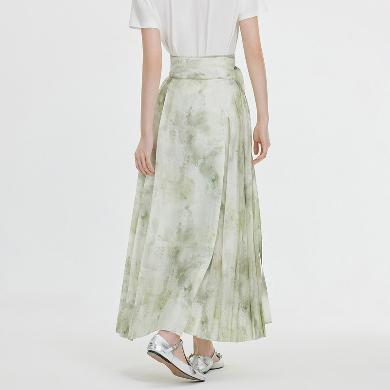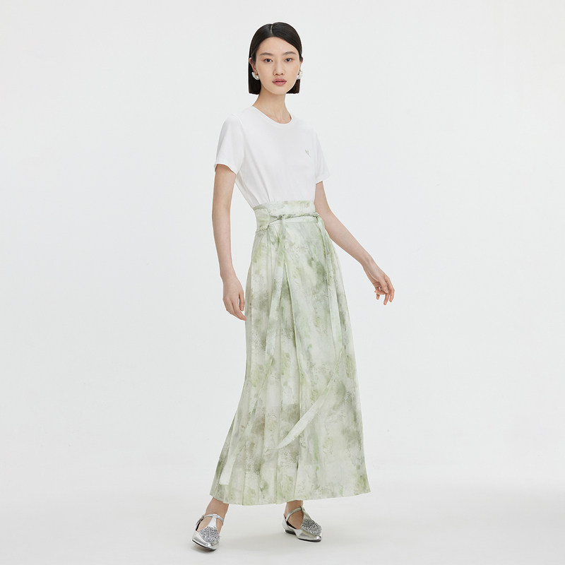naivee纳薇新中式水墨印花高腰改良马面裙国风A字半身裙女