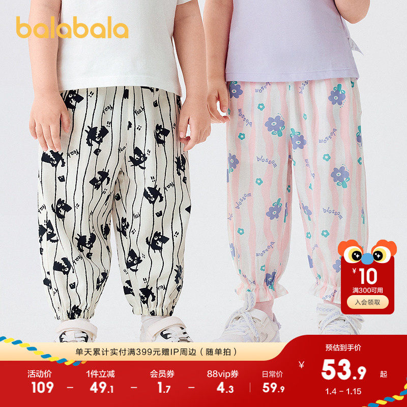 巴拉巴拉儿童裤子男童女童夏季防蚊裤宝宝睡裤天丝人棉长裤可外出