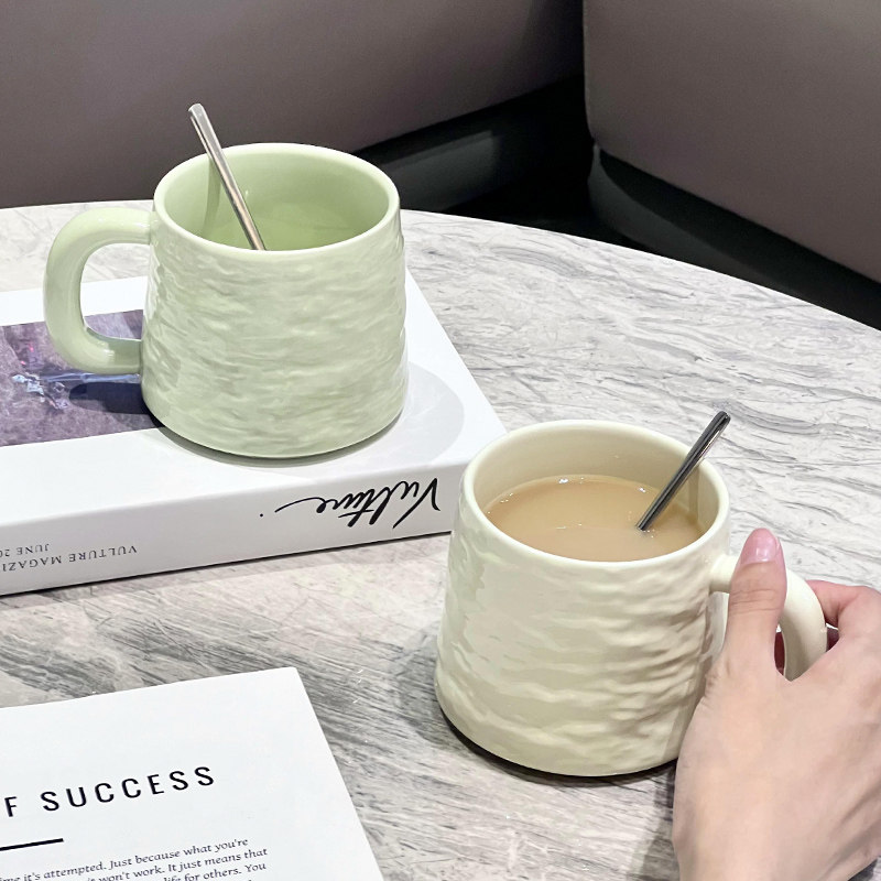 ins陶瓷杯高级感扭扭马克杯家用小众设计情侣咖啡杯女生喝水杯子