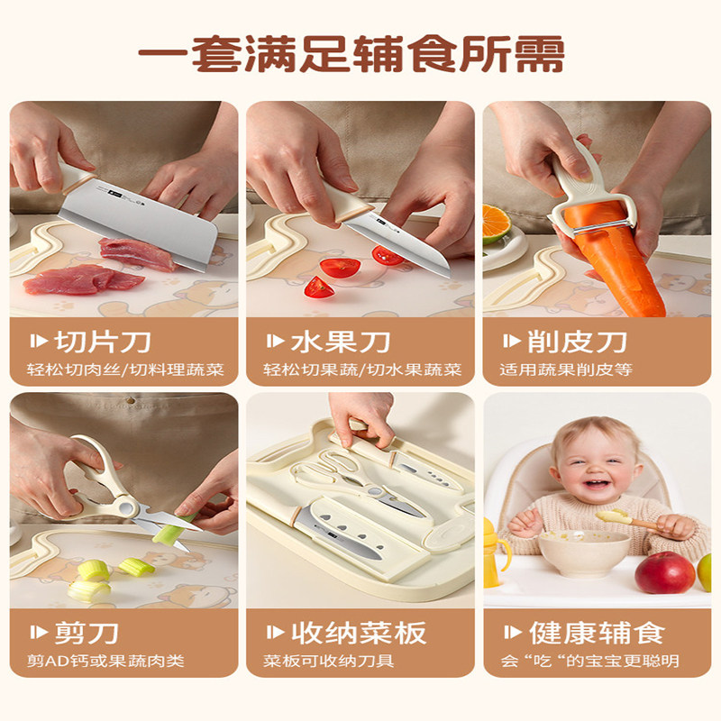 婴儿辅食刀具套装神器组合工具家用厨房宝宝案板切菜刀菜板二合一