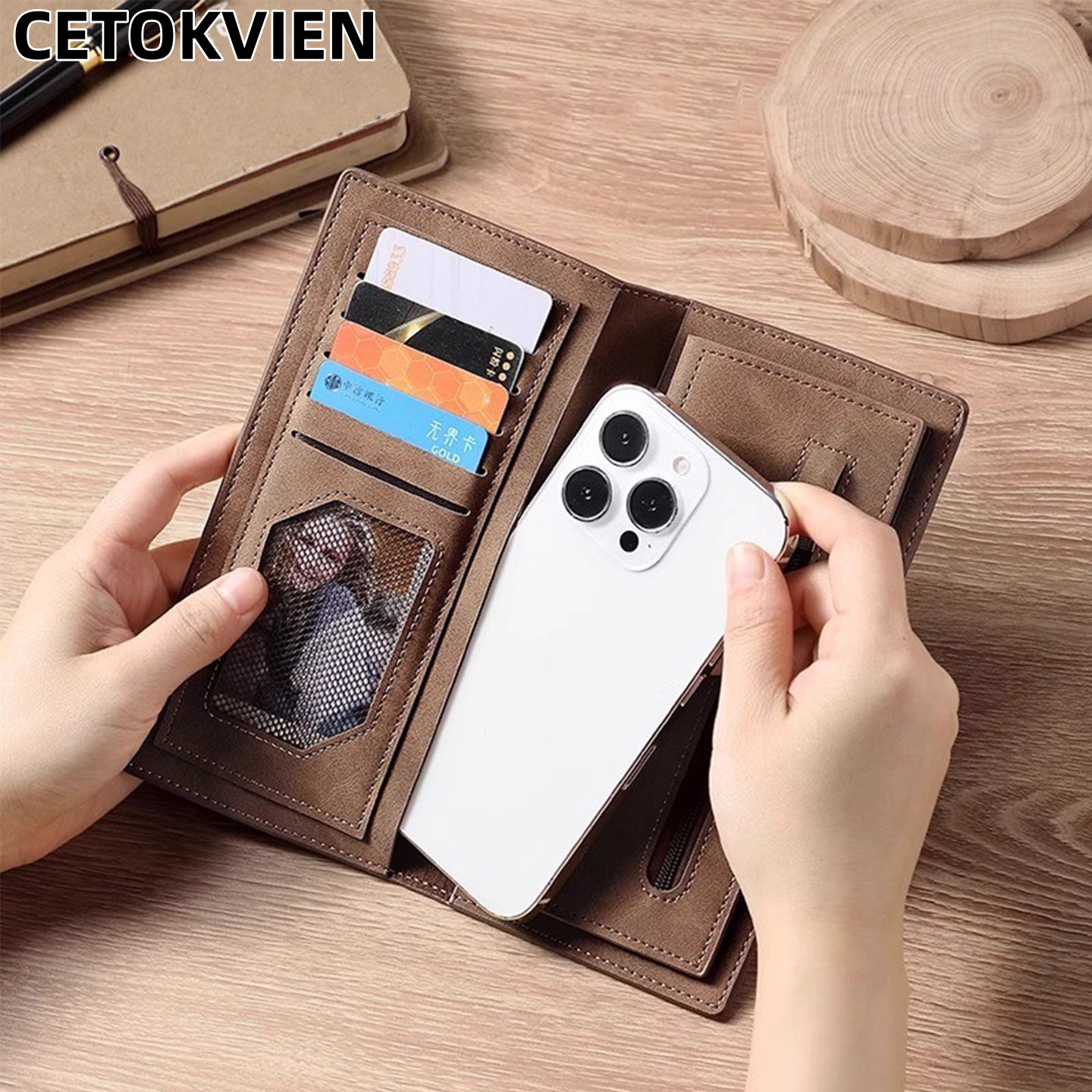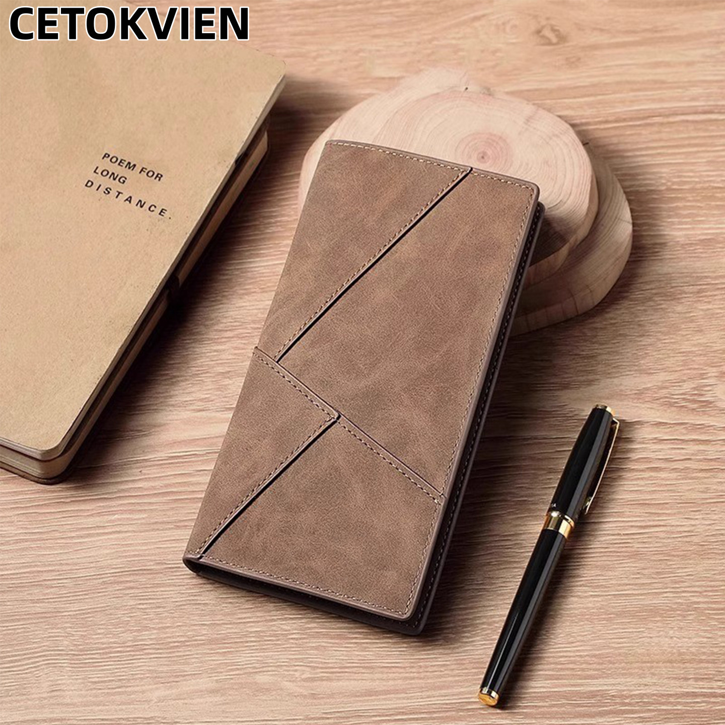 CEUTOKVIEN钱包男士真皮质感长款手拿包折叠卡包一体男款皮夹钱夹